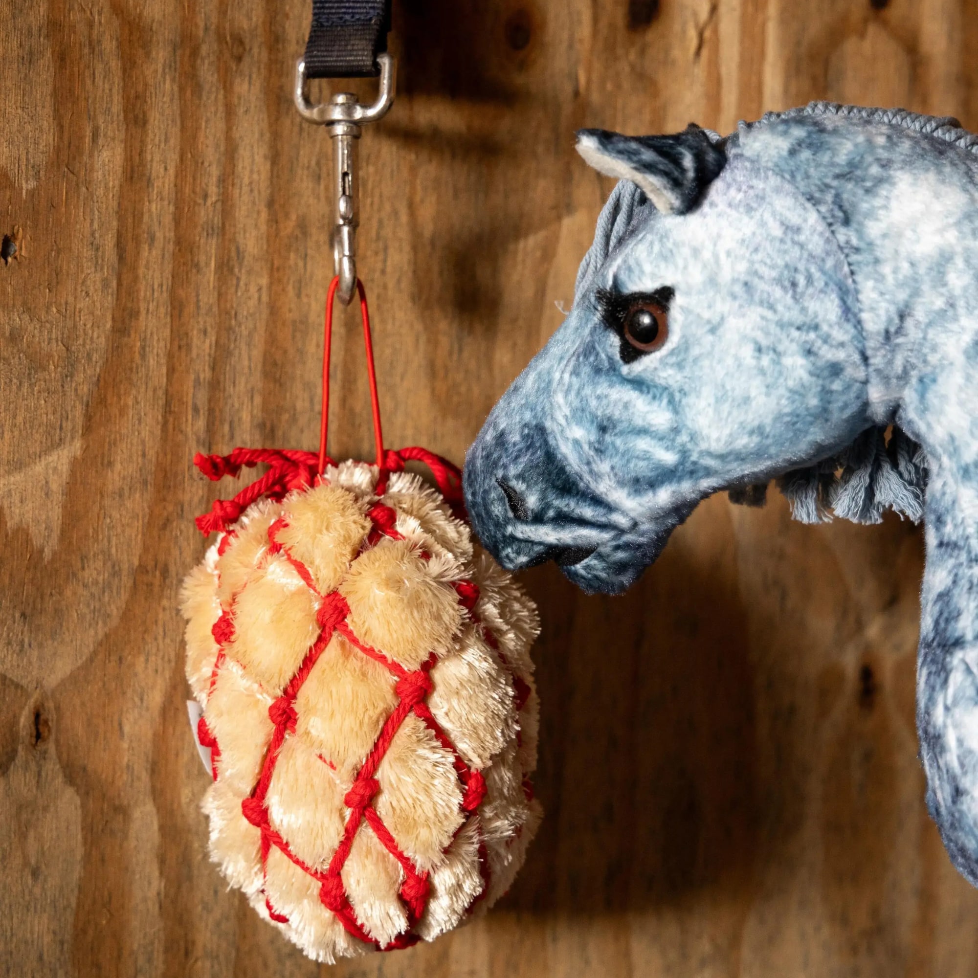 Feed your Toy Pony with this charming miniature hay bale in a red haynet.