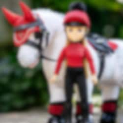 Chloe has long, blonde hair that can be brushed and styled, along with natural eyelashes for a realistic look. She wears LeMieux’s classic riding outfit in Chilli Red, complete with a removable helmet and riding boots, all carefully designed as miniature versions of the real LeMieux collection.