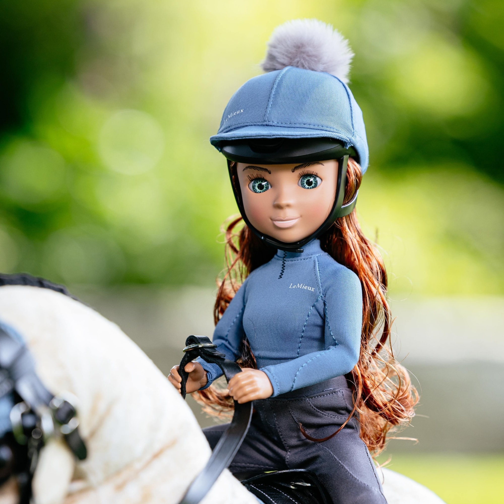 Olivia has long, soft chestnut hair that can be brushed and styled, along with natural eyelashes for a realistic look. She wears LeMieux’s classic riding outfit in Ice Blue, complete with a removable helmet and riding boots, all carefully designed as miniature versions of the real LeMieux collection.