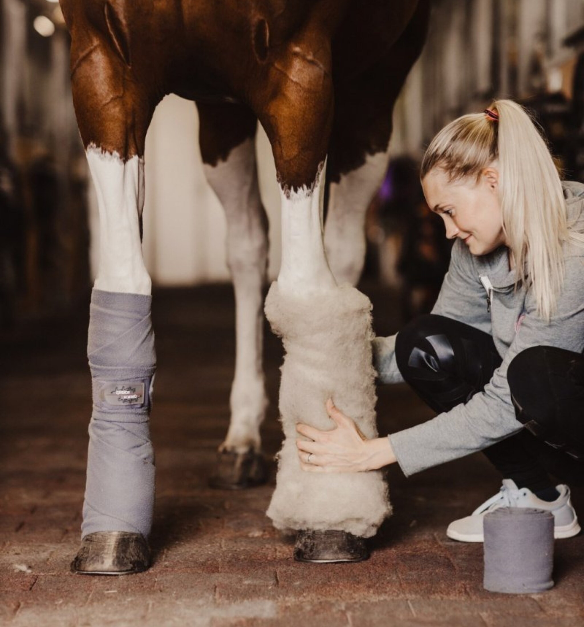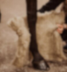 - Wrap the wool around a dry leg, all the way down to the fetlock.