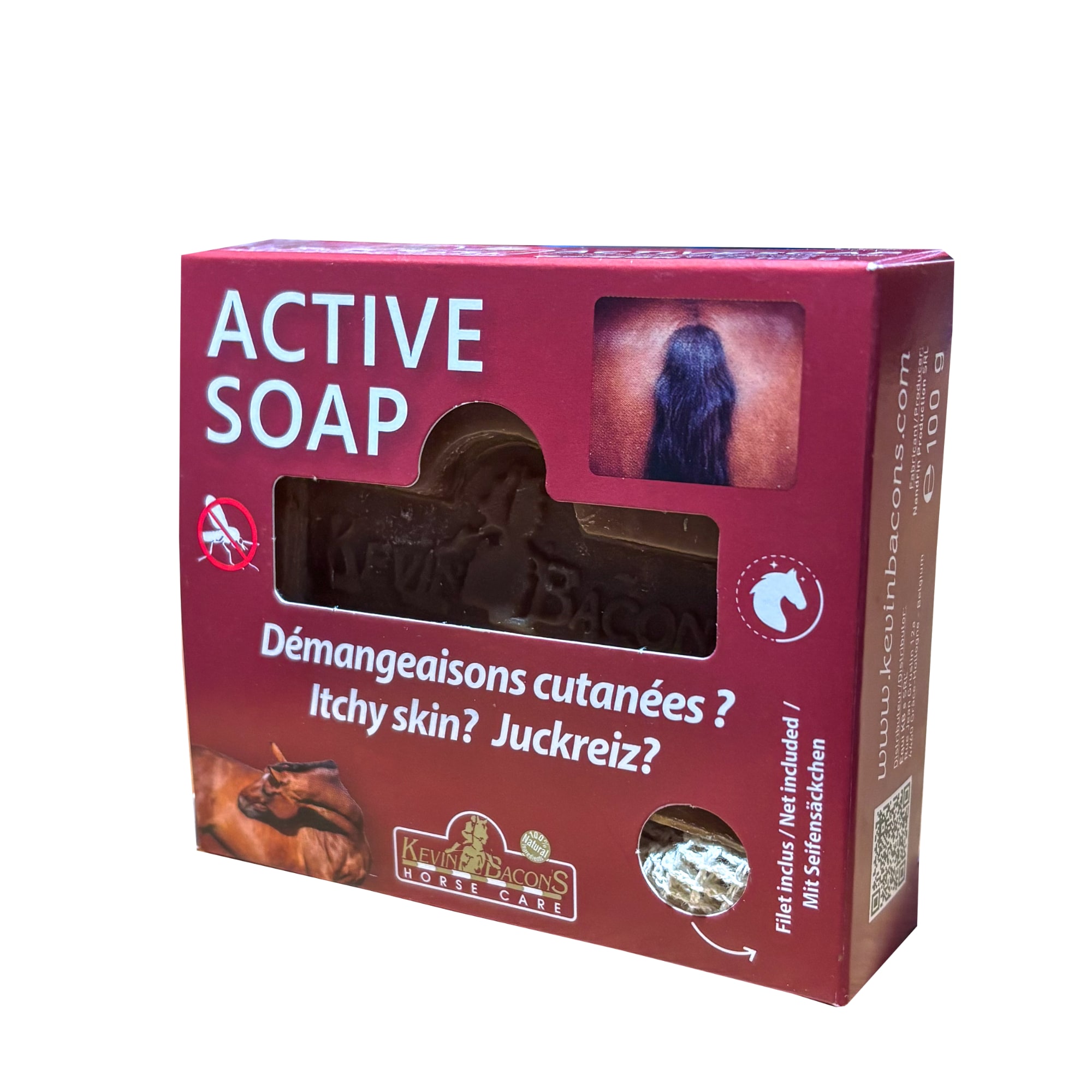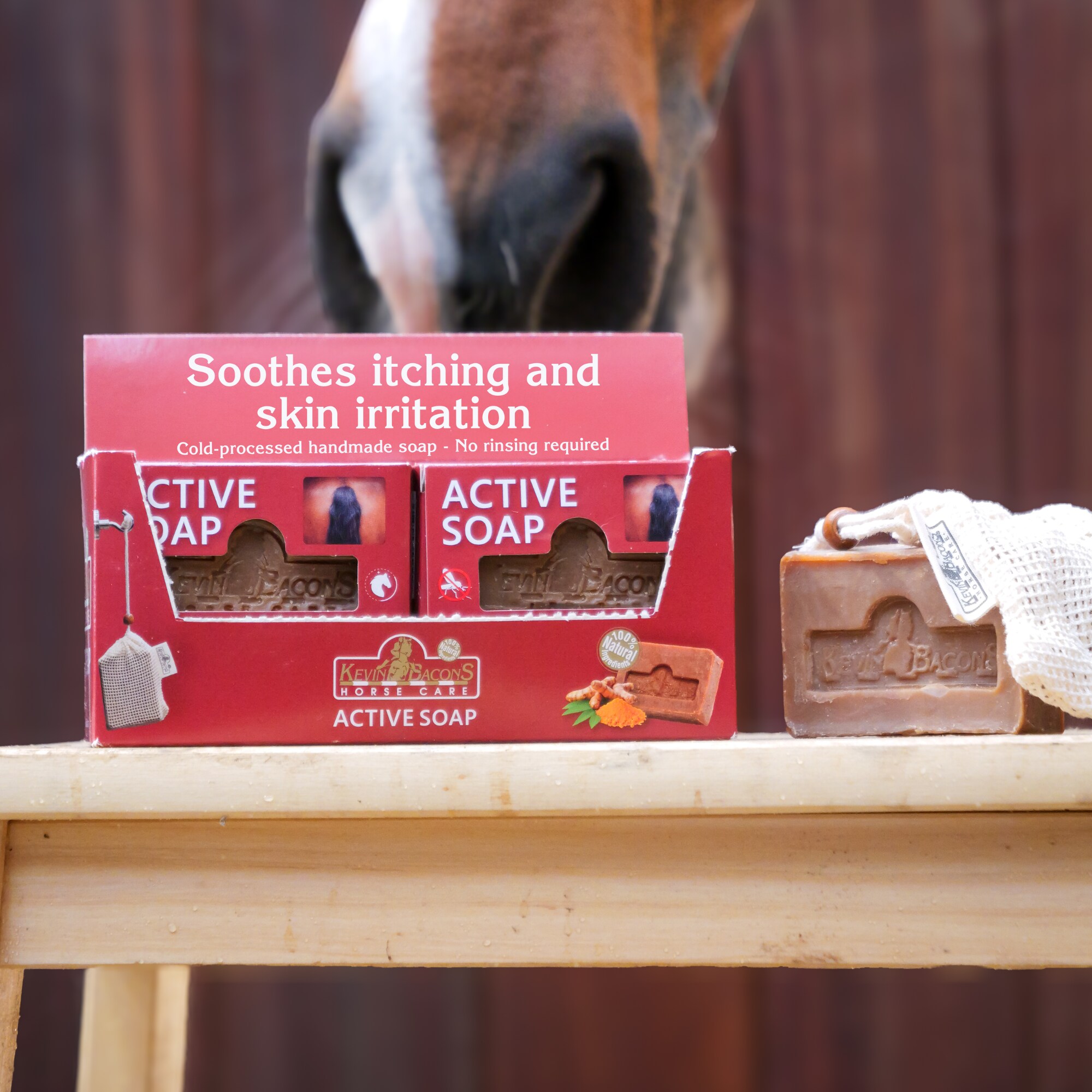 Active Soap also strengthens the coat, mane and tail, adds a healthy shine and helps keep the hair soft and easier to detangle. The caring formula moisturises and supports the skin’s natural balance.