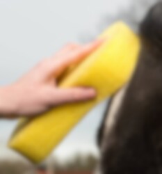 This grooming sponge is perfect for washing or shampooing your horse, whether during a bath or after a ride. When you open the package, the sponge expands to its full size, becoming soft and pliable.