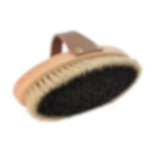 Grooming brush with a beechwood back and bristles made of 100% natural horsehair. Equipped with an easy-to-grip leather strap that provides comfort and control during grooming.