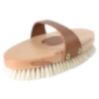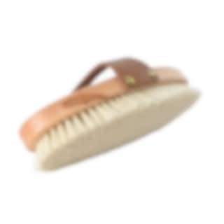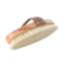 Exceptionally soft brush in the shape of a traditional body brush, made with a beechwood back and 100% goat hair bristles. The goat hair brush helps to bring out a natural shine in the coat and, thanks to its ultra-soft bristles, is ideal for clipped horses, those with a finer coat, or sensitive horses. Designed with a leather strap for an optimal grip.