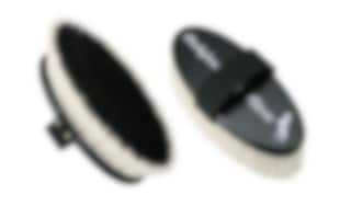 A high-gloss grooming brush from William Leistner with soft synthetic bristles and an elastic hand strap.