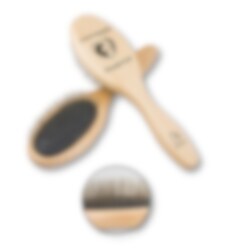 Detangle mane brush is perfect for detangling tangled manes and tails in a gentle way. Using good brushes for the mane and tail is of great importance as it takes a long time for the hair to grow back. On the Detangle mane brush, the spikes sit on a soft cushion of natural rubber and on the back there is a safety device to prevent the spikes from being pushed into the rubber cushion.The spikes are in stainless steel and 1.7 cm long. The handle of the brush is mad of natural lacquered beech wood.