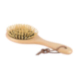 This mane and tail brush is ideal for gently detangling knots while creating a soft, glossy finish on both mane and tail. The wooden bristles are mounted in a flexible rubber cushion, which reduces static electricity and makes grooming both comfortable and effective.