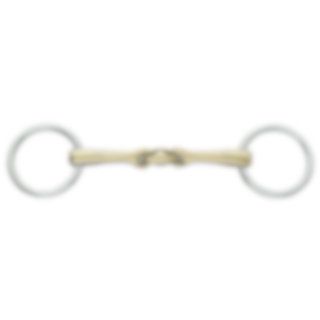 Sprenger's double-jointed KK Ultra bradoon bit in Sensogan – a 14 mm thick bit with an anatomically shaped centre link that provides a soft and even contact surface in the horse's mouth.