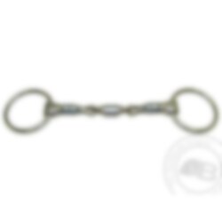 The Elliptical Lock Up is a double break bit with a "locked" lozenge in the center. It is sharper than the Control Plate due to it having a smaller surface area. Consequently, a horse using its tongue as a means of pushing against the bit and therefore taking control, will draw back and tuck its chin in, coming back to a better point of control. The lock up effect prevent the "nutcracker effect" felt on the horse's mouth.