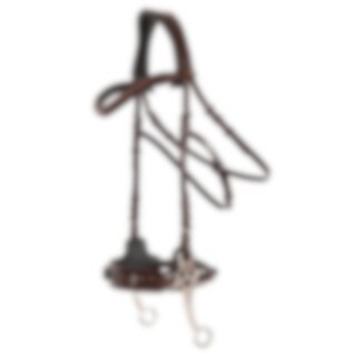 An incredibly fine bridle with soft lining on the inside of all parts of the hackamore, so that the horse is protected from chafing. The size is regulated with a chin strap which also has a soft padding.