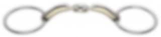 The Novocontact double-jointed bit looks exactly like the Dynamic RS bit. However, the difference lies in the mouthpiece. The anatomic design of the mouthpiece is the same but the rest of the bit has been given a more oval shape. The transitions between the lozenge, mouthpieces and cheekpieces have been made softer for enhanced interaction and effect. This bit from Sprenger has thicker mouthpiece ends and a shape that functions differently depending on how light/hard the rein contact is. The Novocontact double-jointed bit is recommended for use on slightly stronger horses.