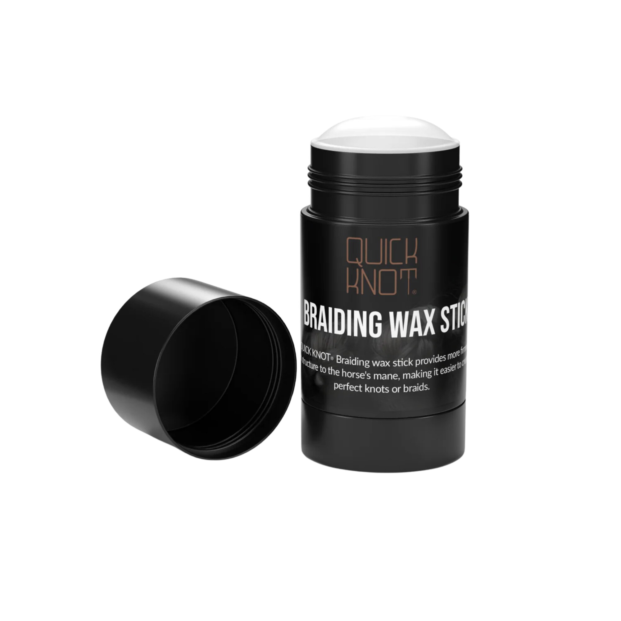 Quick Knot braiding wax from Hes-Tec makes it easier to braid mane and tail by providing better grip and keeping stray hairs in place. The wax is applied directly from the stick without mess and helps you create even, smooth braids and neat knots without loose hairs, with a natural shine.