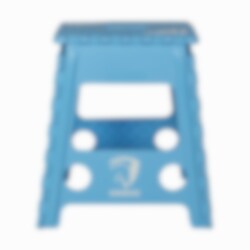 A lightweight foldable step stool for mounting your horse, etc. in Light Blue. Unfolded, the stool measures 38.5 cm in height.
