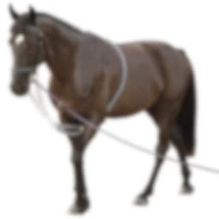 This is a lunging assist that helps the horse to work with his back muscles and follows the horse's movements. This longer aid made of cotton braided robust rope that will protect the horse from chafing. It adapts to the horse's position so that the pressure in the bite is evenly distributed on both sides. There is a metal ring at the transition between the thicker and narrower part to hold the lung aid in place and can also be used for clamping. Color: Black and white
