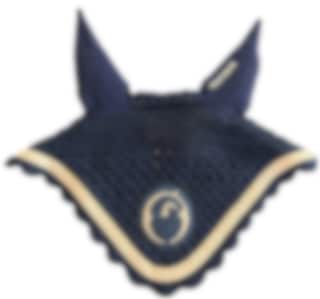 Leeds earnet for horses is very stylish and comfortable. The earnet from Vestrum is knitted in blue navy with the Vestrum logo in beige on the front and Vestrum written in beige on the left ear.