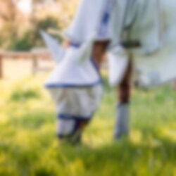 Rambo Flymask Plus is made from extremely durable textilene body, soft polyester material on the ears and comfortable fleece edging. This flymask has an improved design including insert for optimum eye protection, detachable nose protection, large fitting soft ears and adjustable closure with elastic to allow the horse to graze comfortable.