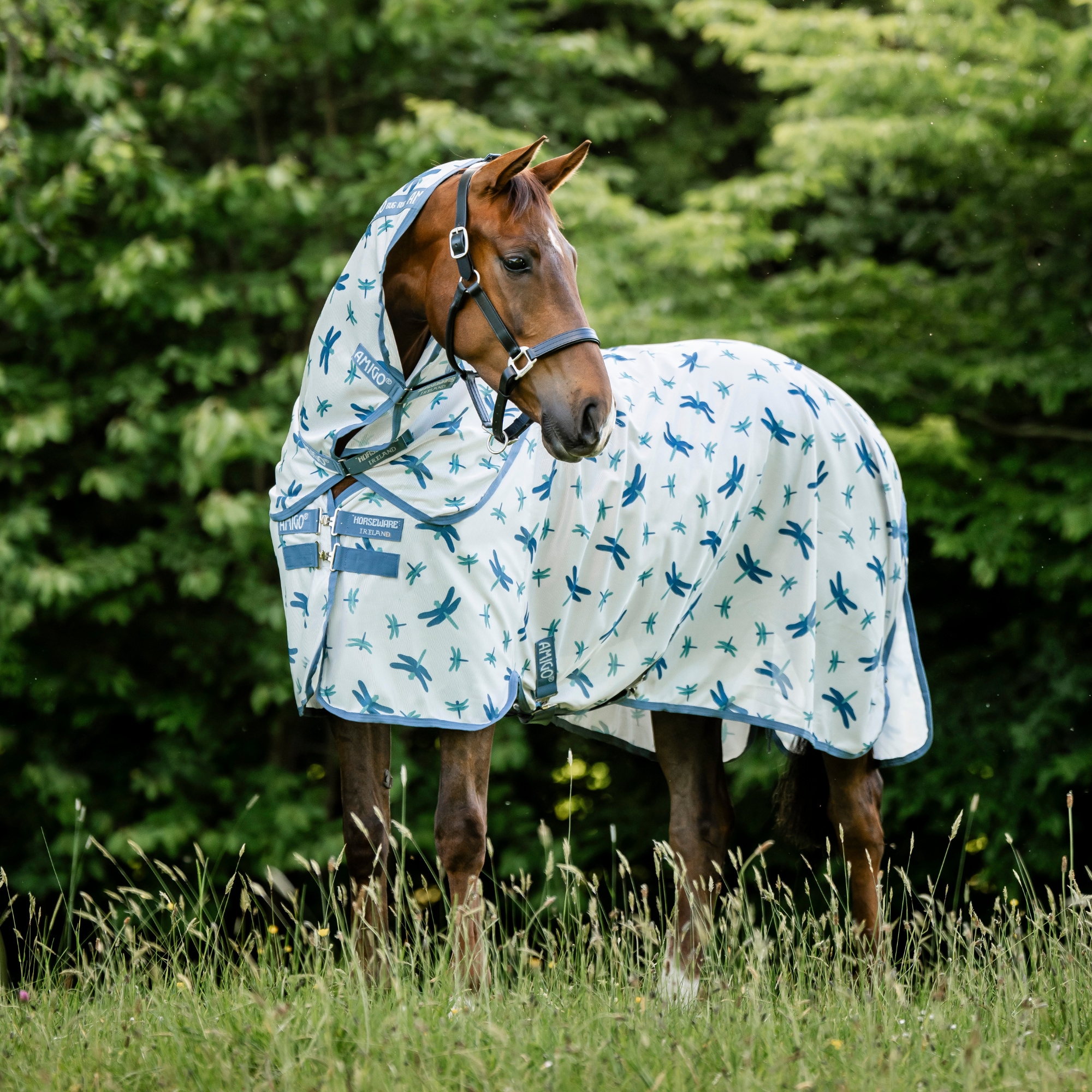 The inside of the tail flap and around the shoulder area has a silky lining that helps reduce friction on the tail hair and coat, and is soft and comfortable against the horse. The fly sheet has rear loops for optional use of leg straps.
