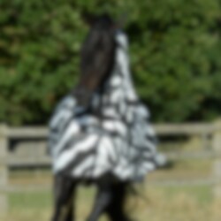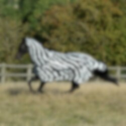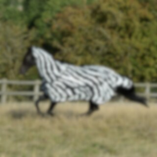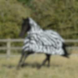 Zebra-patterned fly rug with a detachable neck and belly pad from Bucas.