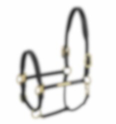 The Eskadron leather halter is equipped with soft, detachable padding at the neck and nose areas.