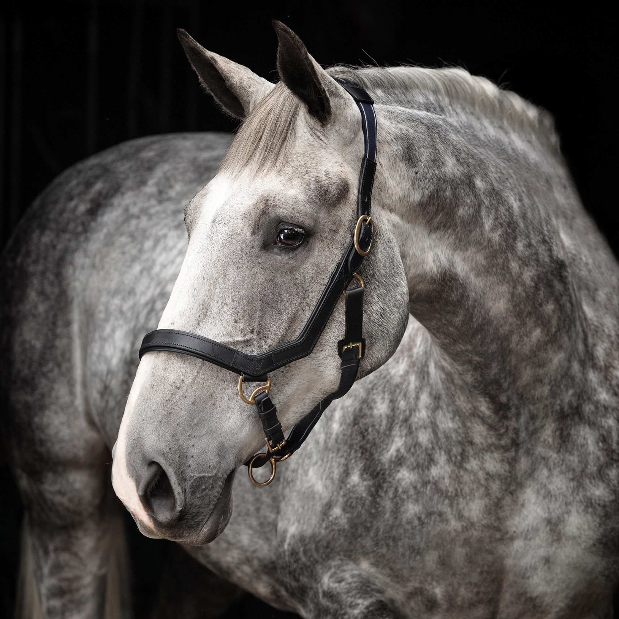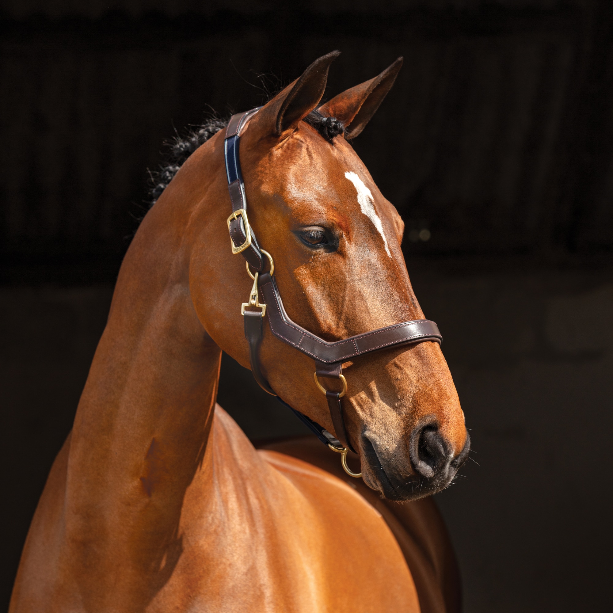 The headcollar is adjustable on both sides and under the chin with elegant brass buckles, making it easy to achieve a precise and comfortable fit. Its stable construction and intelligent shape help prevent twisting, offer improved control when leading and assist in protecting the horse’s eyes.