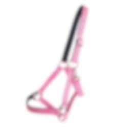 Pink nylon halter, perfect as a turnout halter for everyday use.