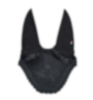 Equiline's Fly Veil Kim in a neat design making it easy to match to several different saddle pads, the fly veil protects the horse's ears from insects during summer and is a neat detail for training and competition. Equiline Logo on the left ear.