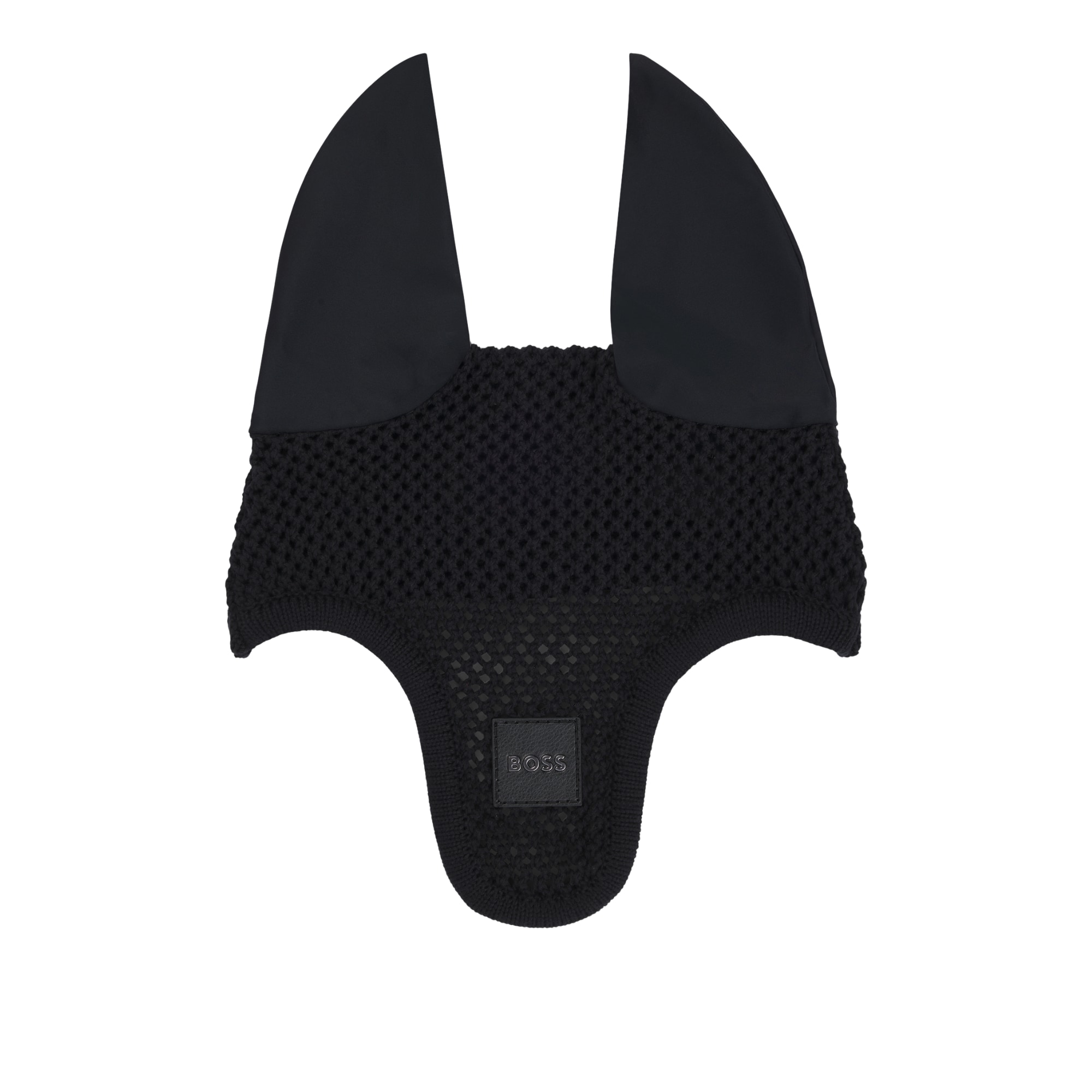 Sleek and breathable fly veil with full ear coverage that provides effective protection against insects. Made from crocheted fabric with matching black trim and a subtle BOSS logo in imitation leather.