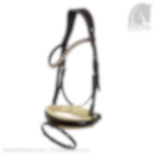 This is a beautiful bridle in the model Tokyo that has a wider softly padded ergonomic neck piece, the noseband is buttoned back and Comfort XS model with extra wide, sand colored padding which is making this bridle something really special.