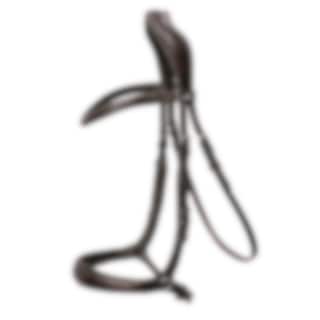 The anatomical design provides a high level of comfort for the horse. The softly padded headpiece offers generous ear clearance and helps reduce pressure over the poll. The browband is extra curved and slightly wider to help avoid pressure around the eyes and ears.
