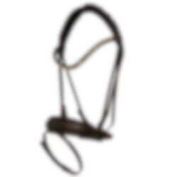 This is a chocolate-colored München Feel Good bridle with the slightly wider, well-padded neck piece, which is specifically named Feel Good because it has a softer fit against the horse's neck. The noseband on this round-sewn bridle is 5 cm wide in the model Comfort XS Feel Good, which means that the noseband comes without inner seams. The noseband cut back and narrows at the sides where the horse has the least space at the bit, the closure of the noseband is buttoned back.
