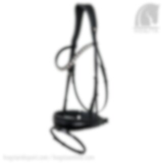 This black bridle in the model Tokyo includes a anatomical and soft neck piece which has a softer fit against the horse's neck. The noseband on this bridle is in the Comfort XS 5 cm model, which means that the noseband is 5 cm at the widest point and evenly tapering towards the sides where the horse has the least space at the bit, the closure of the noseband is buttoned back.