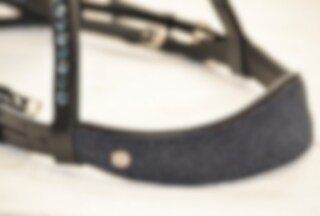 This is a black bridle with a top quality leather with exclusive details in the form of dark blue glitter on the noseband and neckpiece. The neck piece is ergonomic and really soft with an upper side decorated with Crysal Fabric in Montana blue. The noseband is a Comfort XS 5 cm, which means that the noseband is widest at the front and tapers towards the sides where the horse has the least space at the bit, the closure of the noseband is buttoned back. The noseband is also decorated with a wide piping with Crystal Fabric in the same Montana Blue color as the neck piece.