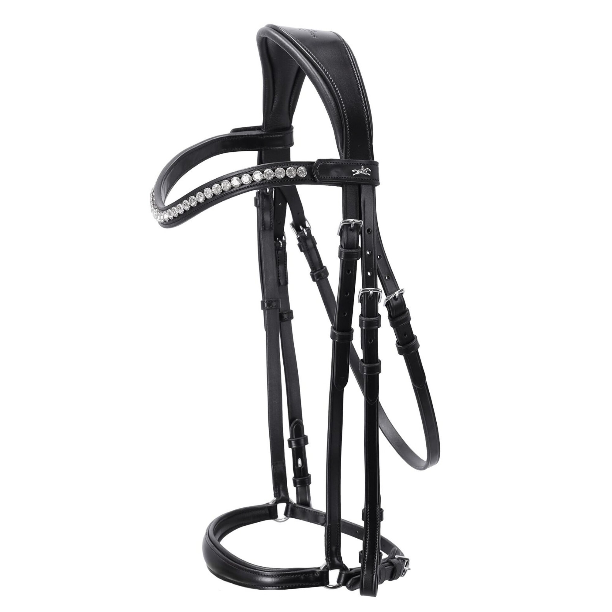 - Curved browband with large crystals and quick-change fastening (press stud and Velcro)