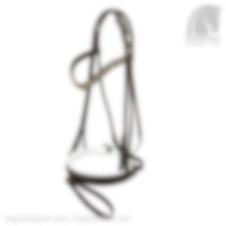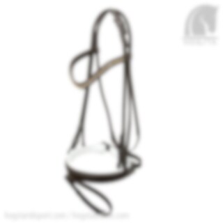 This is a round sewn brown München bridle with a noseband that is 4cm wide, has white padding and a snap back closure. The beautiful bow-shaped browband on the bridle is decorated with gold-set Tiffany XL 8 mm genuine Swarovski stones in the color Golden Shadow.
