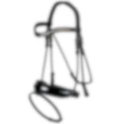 A bridle with many features. Ergonomic design, extra wide noseband that tapers off and curves at the sides to reduce the risk of pinching between the bit and noseband. Crank fastening. Anatomic design headpiece for added space around the ears with cheek pieces that attach to the noseband sides for extra comfort. In addition, the headpiece feature neoprene padding and a soft sheep leather lining (without the fleece).