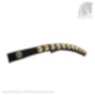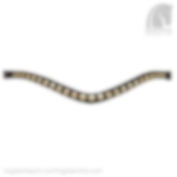 This beautiful browband is of the highest quality leather and has large (10mm) silver-framed gold toned Swarowski crystals. A very beautiful color combination.