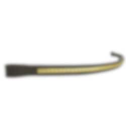 The browband is decorated with an inlaid brass-coloured clincher, giving it an elegant and timeless character. The golden metal strip creates a sophisticated contrast against the brown leather, adding an exclusive yet understated finish to the bridle.