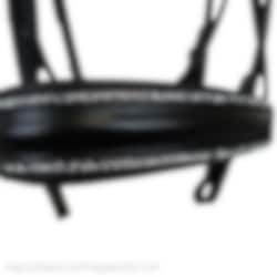 Very neat double bridle from Otto Schumacher with a well padded noseband in the model Comfort XS and piping in the color crystal. The neck piece on this double bridle is narrow and anatomical which means that it is soft and lies well against the horse's neck. The browband Rivoli is curved with big (10 mm) swarowski crystals in the color Crystal.