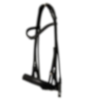 This is a black round sewn Munich double bridle with a 4 cm wide well-padded tone-on-tone noseband that is buttoned back. It comes with the beautiful bow-shaped browband is decorated with 12 mm large genuine Swarovski crystals Tiffany XL in the color Silver Night.