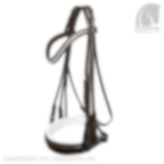 München is a really nice and well-made round-stitched double bridle from Germany. This particular one has an arched browband with silver-plated Swarovski crystals in Crystal. The noseband is white-lined, extra wide in the middle at the front (XL 5 cm) and tapering towards the sides and has a back fastening..