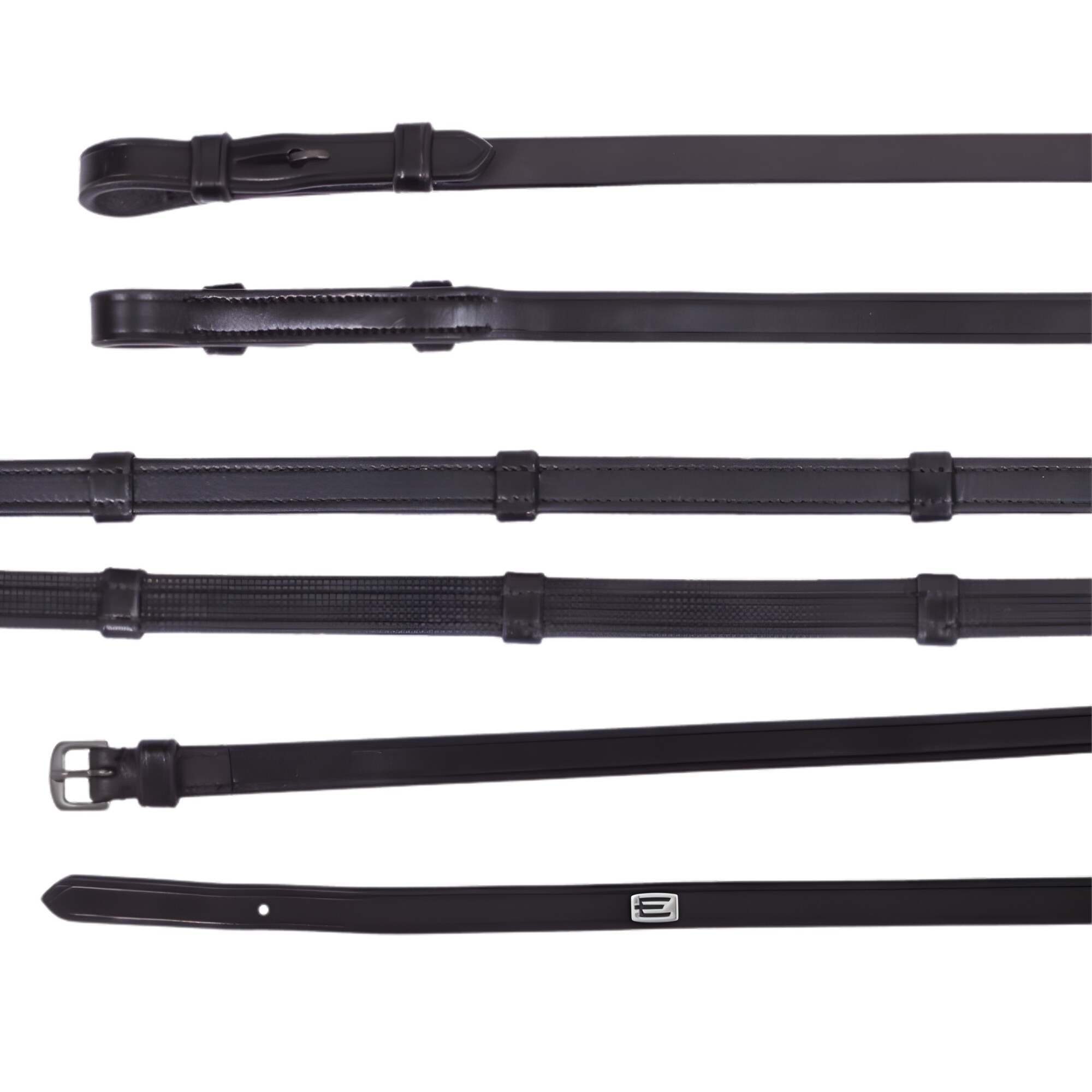 With a width of 13 mm (rubber side approx. 16 mm), the reins offer a balanced feel and good contact with the horse, making them ideal for riders who want both function and style.