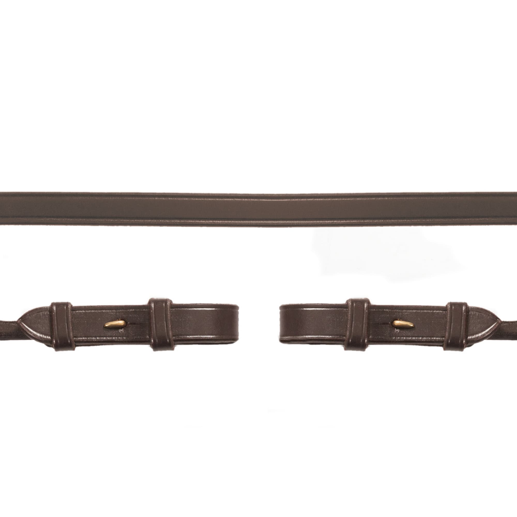 The reins are made entirely from leather and are not split. Instead, they feature a practical leather loop that allows the length to be adjusted as needed.
