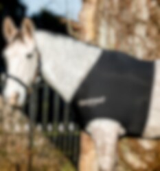 Anti-static fabric increases comfort, zip closure to the chest and belly for easy dressing. Decorative Horseware® Screen print on one shoulder.