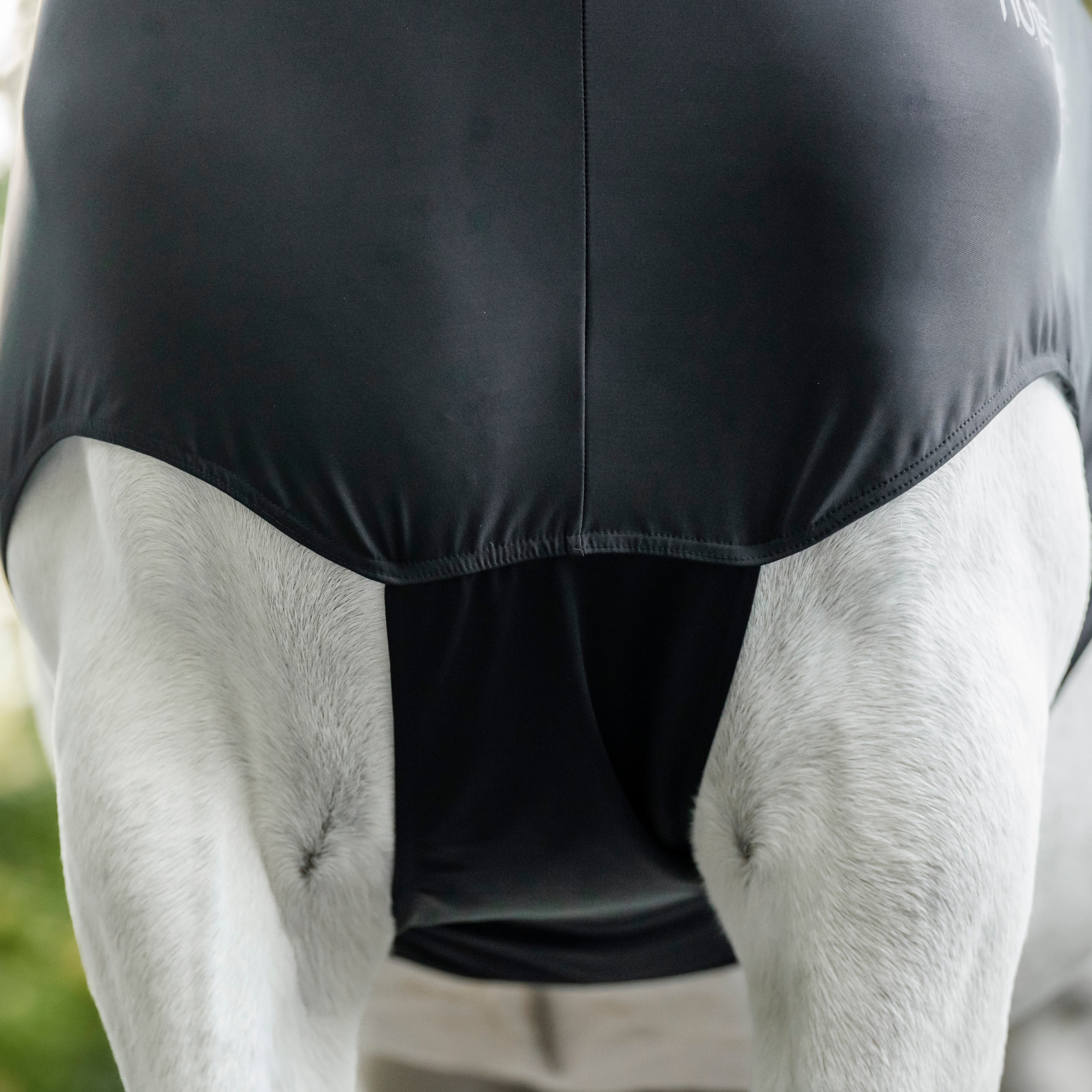The shoulder protector is designed with front leg arches for a secure and snug fit that moves naturally with the horse. Its flexible construction combines comfort and freedom of movement, and the anti-static finish makes it easy to use and keep clean.
