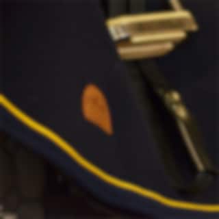 Beautiful navy blue competition sheet in wool for your horse with a piping in yellow from Mias RS.