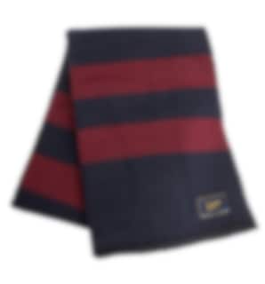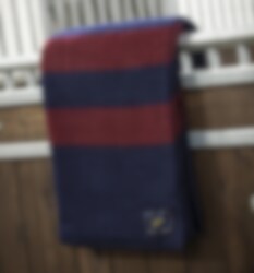Lovely wool blanket from Lippo! Made from 100% wool in a nice navy blue color with burgundy stripes. 180x210 cm