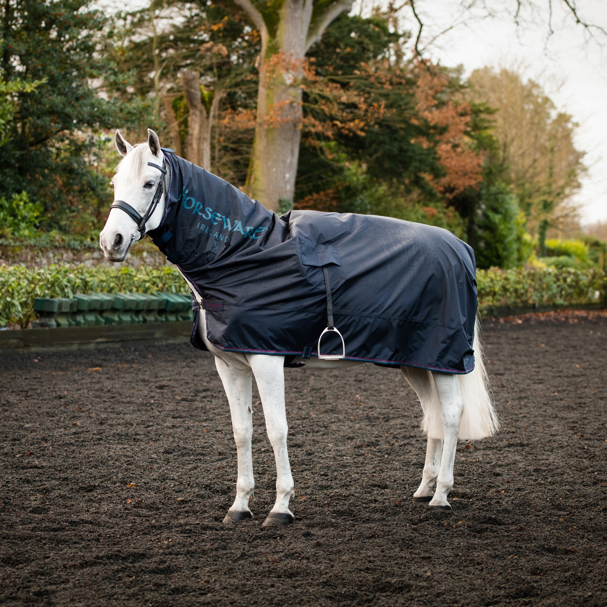 The rug is designed with carefully positioned seams to provide maximum freedom of movement and comfort for your horse during riding. The fixed neck cover extends from the withers to the poll and attaches securely to the bridle with Velcro. Its compact storage bag makes it easy to take to competitions, training sessions, or outdoor rides – ideal for keeping in your horsebox or tack room for unpredictable weather.