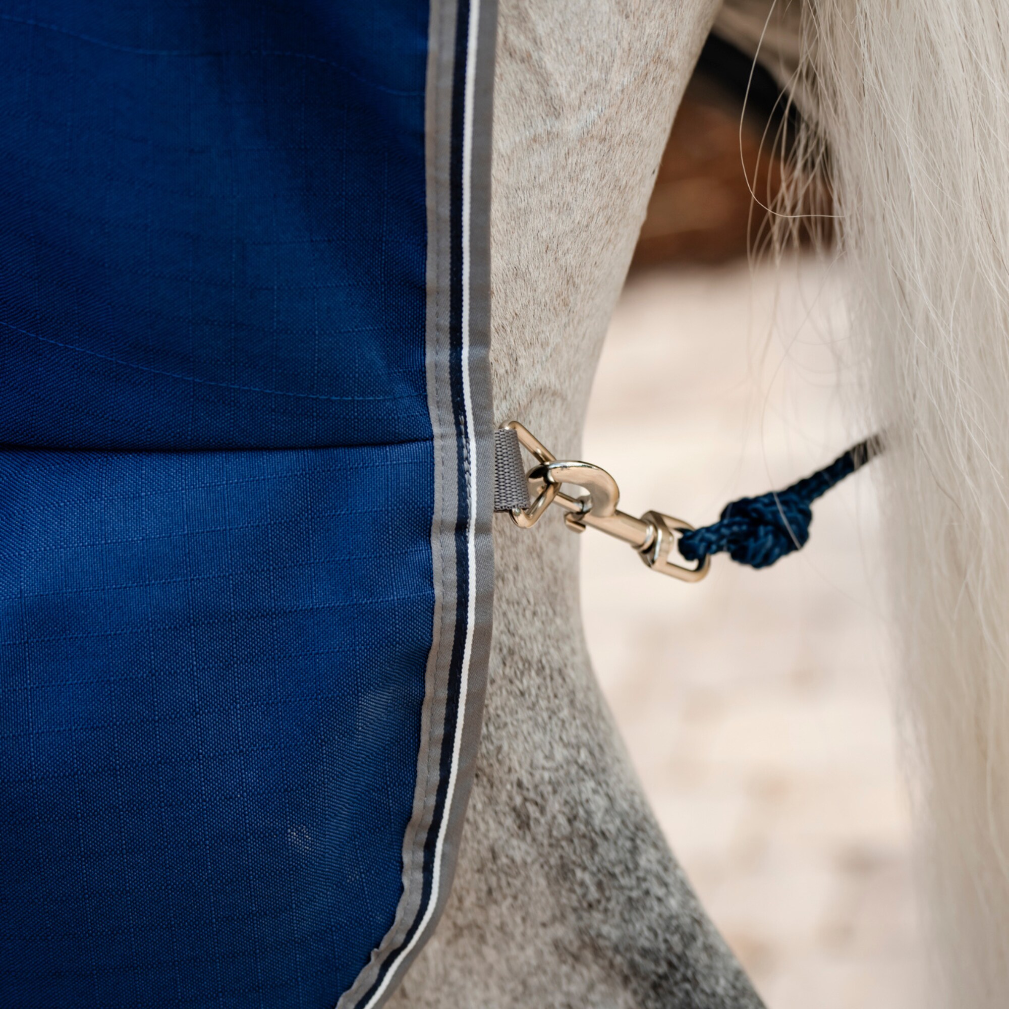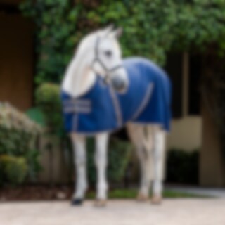 The rug offers a classic cut with a straight front closure, adjustable cross surcingles and a tail strap for a secure and stable fit – ideal for use in the stable, during transport or after training.