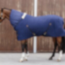 Horse Duvet from Kentucky is a 300gr lined rectangular blanket with filling that breathes and keeps the horse warm in the stable when it is cold. The duvet has no straps or buckles but can be used with an elasticated surcingle under a stable rug when you need to put under another heat-isolated blanket. The fiber filling on Horse Duvet is made in multiple layers which makes it possible for the air to circulate in the blanket and in that way keep the horse warm. The filling in this duvet has one additional capacity, that is does not absorb any smell. 200 x 180 cm