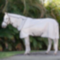Amigo Integrated Fly Sheet in silver is the perfect solution to protect your horse from summer skin irritations caused by insects. Made from knitted polyester on the outside, it serves as an effective barrier against flying insects. The fully integrated neck cover reduces wither pressure and prevents mane rubs, ensuring optimal comfort for your horse.